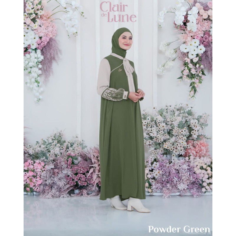 Claire de Lune Sarimbit By Aden Hijab . ? MATERIAL : •• Terdapat 4 material utama yang dipakai pada Claire de Lune Sarimbit ; ▪︎ Ramia : Kain yang diproduksi khusus untuk Aden Hijab (bertekstur lembut, adem, ringan, tidak terawang dan anti kusut) ▪︎ Brukat : Kain brukat original motif by ADEN menggunakan benang sewarna Sheen Satin ▪︎ Sheen Satin : Jenis kain satin yang berteksture cringkle, memiliki karakteristik mengkilap dan mewah ▪︎ Ceruty Babydoll : Karakteristik kain seperti pasir namun berserat lembut, jatuh serta mudah dibentuk. . ? Dress Mom ▪︎ Menggunakan Tie Neck Collar / kerah pita ▪︎ Kombinasi kain Brukat dan Sheen Satin pada bagian lengan ▪︎ Busui dan Wudhu Friendly ▪︎ Metal Tag A.D.E.N ▪︎ Saku pada bagian kanan dalam ▪︎ Outer = desain terpisah dengan inner dan dipercantik dengan kombinasi list Sheen Satin pada outer ? Pashmina ▪︎ Mudah dibentuk dan di styling ▪︎ Finishing jahit tepi full ▪︎ All size = 180 x 73 cm