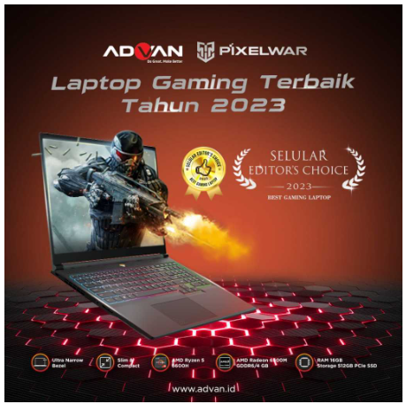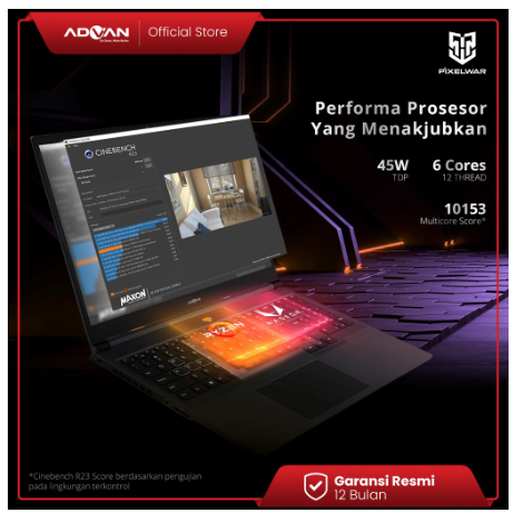 ADVAN Laptop Gaming Pixelwar AMD RYZEN 5 6600H 16” 2.5K IPS 16GB 512GB