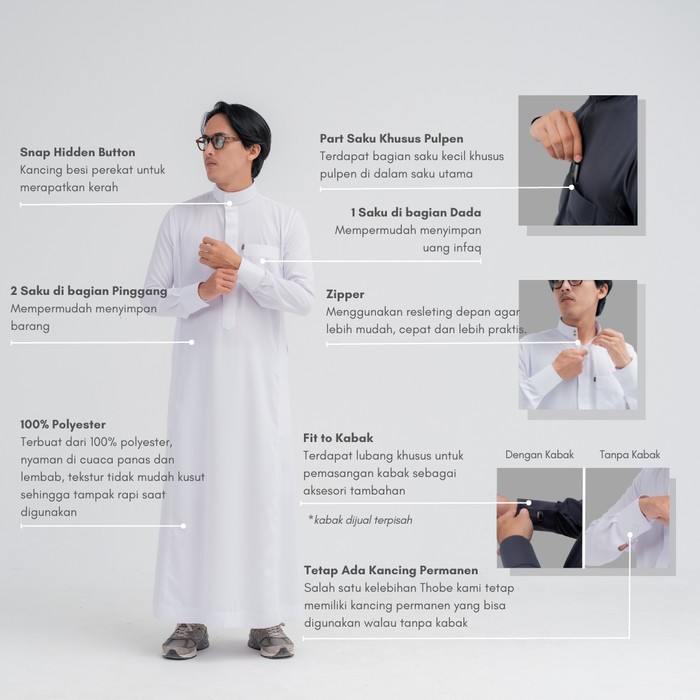 Kami sangat memperhatikan kualitas produk kami dan menggunakan jahitan berkualitas export untuk menjahit thobe ini. Dengan demikian, thobe ini bukan hanya tahan lama dan awet, tetapi juga memberikan kenyamanan saat Anda memakainya.