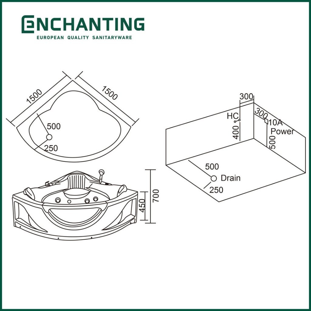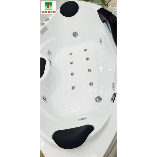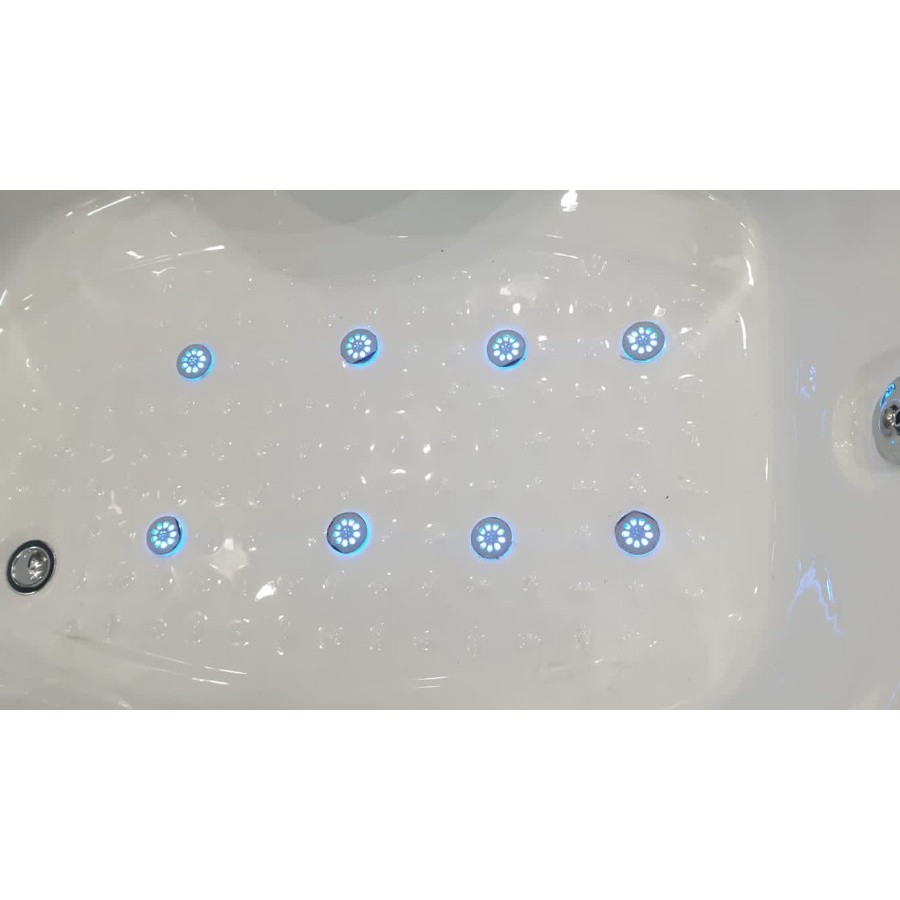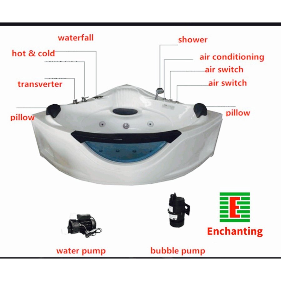 E8616 Bathtub Material: Acrylic Size: 1500x1500x700mm Whirpool Massage Controlled by 1 HP Pump Touch Control Panel 5 shower nozzle ( massage function) 8 pcs Color Light bubble ,hot and cold switch , shower , pillow , drainer and Jet power adjustable Back Hydro-Massage Jets (power adjustable) Elevating Faucets and Hand Shower Water Fall Intake Leakage Protection Water Shortage Protection kapasitas menampung air 0.8tons = 800 kgs