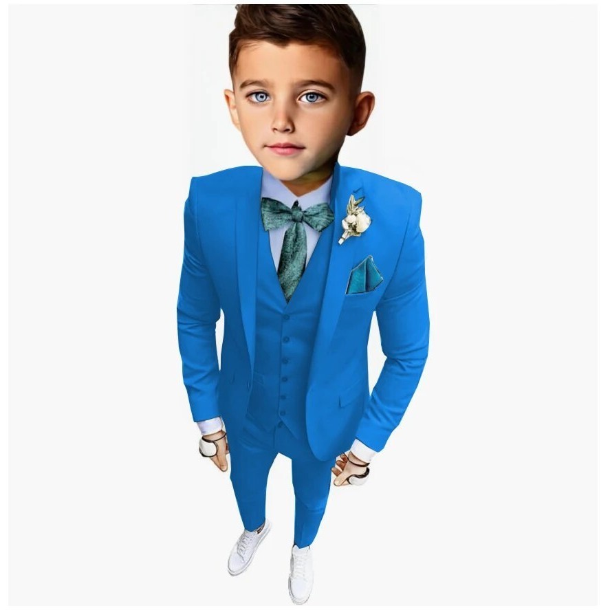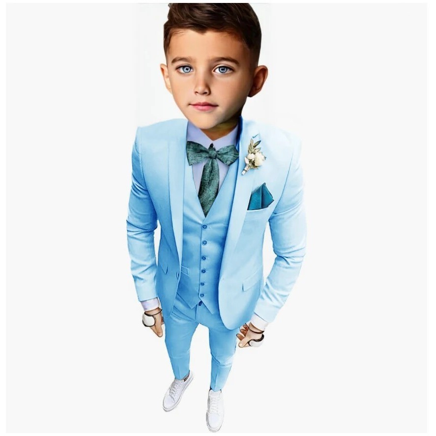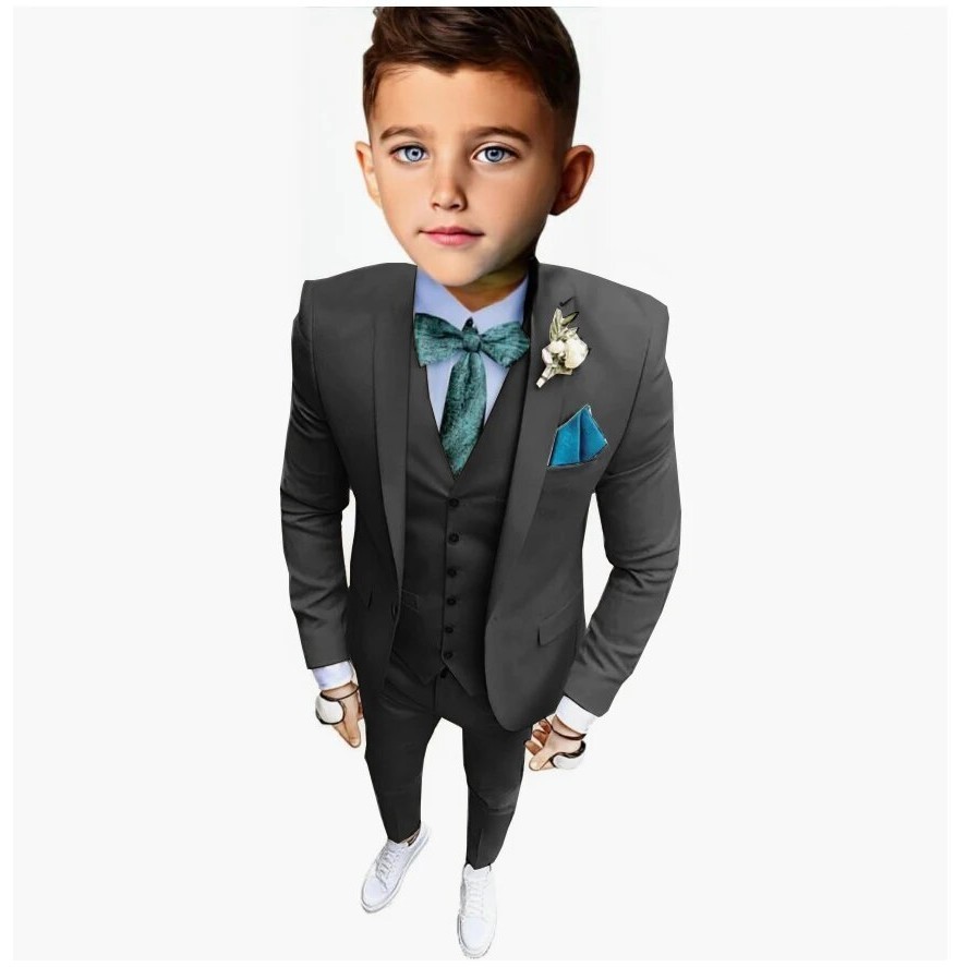 Casual Beige Suit for Boys Wedng Notached Lapel Fashion Style Jacket Vest Pants 3 Pieces Party Child Clothes Slim Fit Kids