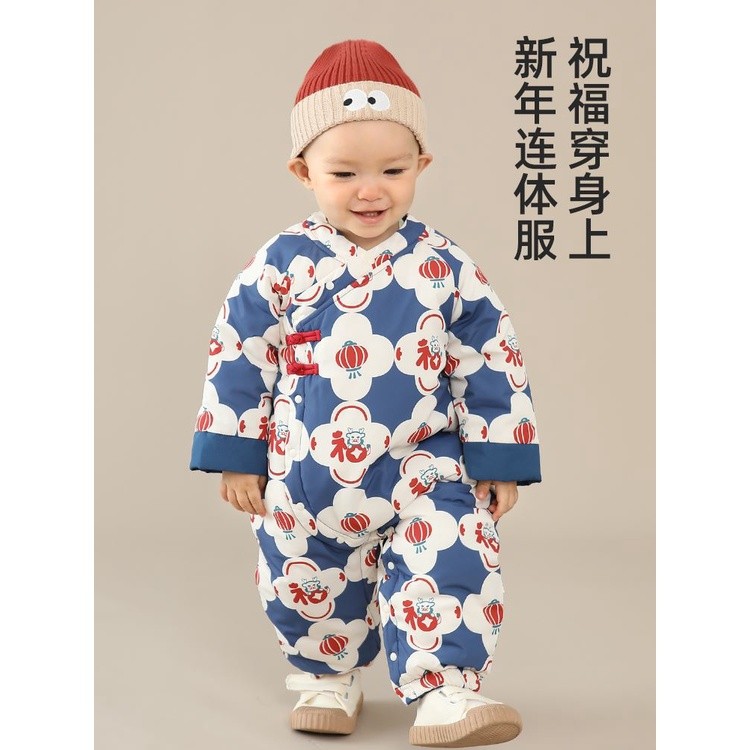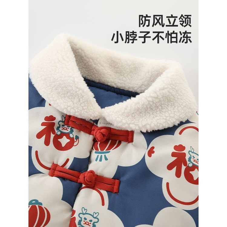 Children's cotton clothes, winter boys' New Year's greetings, baby jumpsuit, warm red Chinese style baby girl jacket, winter clothing