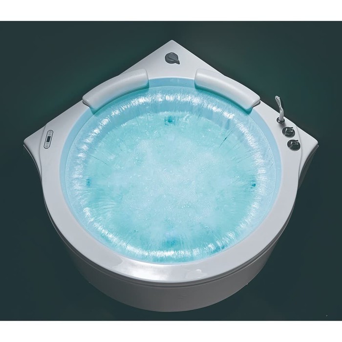 Size: 1500x1500x600 mm Material: Acrylic Circulatory Waterfall Message & Whirpool Massage Controlled by 3 HP Pump Waterfall Power Adjustable LCD Control Panel 8 pcs Color Light Jet Radio Water Fall Intake Leakage Protection Water Shortage Protection