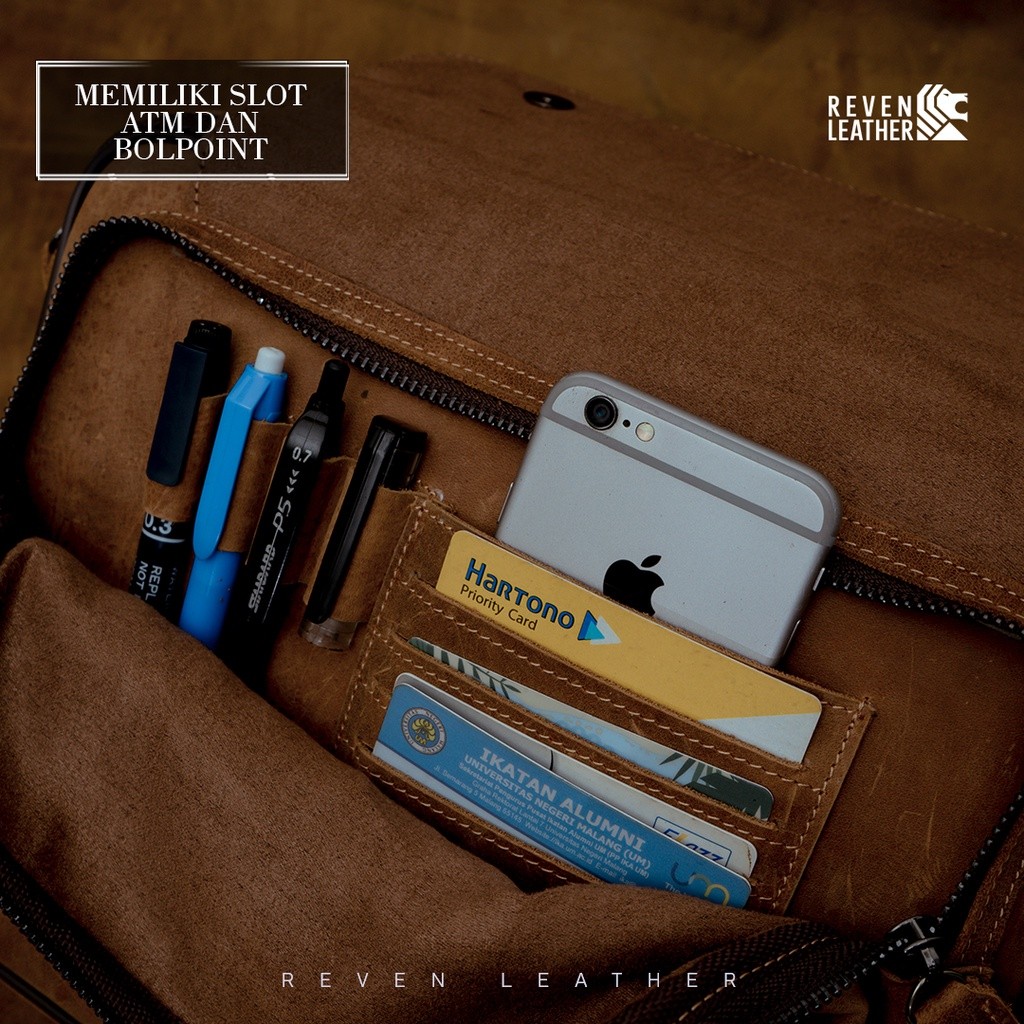 Reven Bima Bag merupakan tas terbaru dari Reven Leather berbahan kulit sapi asli jenis crazy horse dengan kualitas premium. Tas selempang Bima Bag ini memiliki slot atm dan bolpoint di bagian dalamnya. Kulit sapi yang digunakan jenis crazy horse dimana semakin lama pemakaian maka tekstur kulit akan semakin bagus. Jenis kulit crazy horse merupakan varian kulit high end yang memiliki daya tahan yang baik dari segi goresan ataupun ketahanan terhadap paparan sinar matahari.
