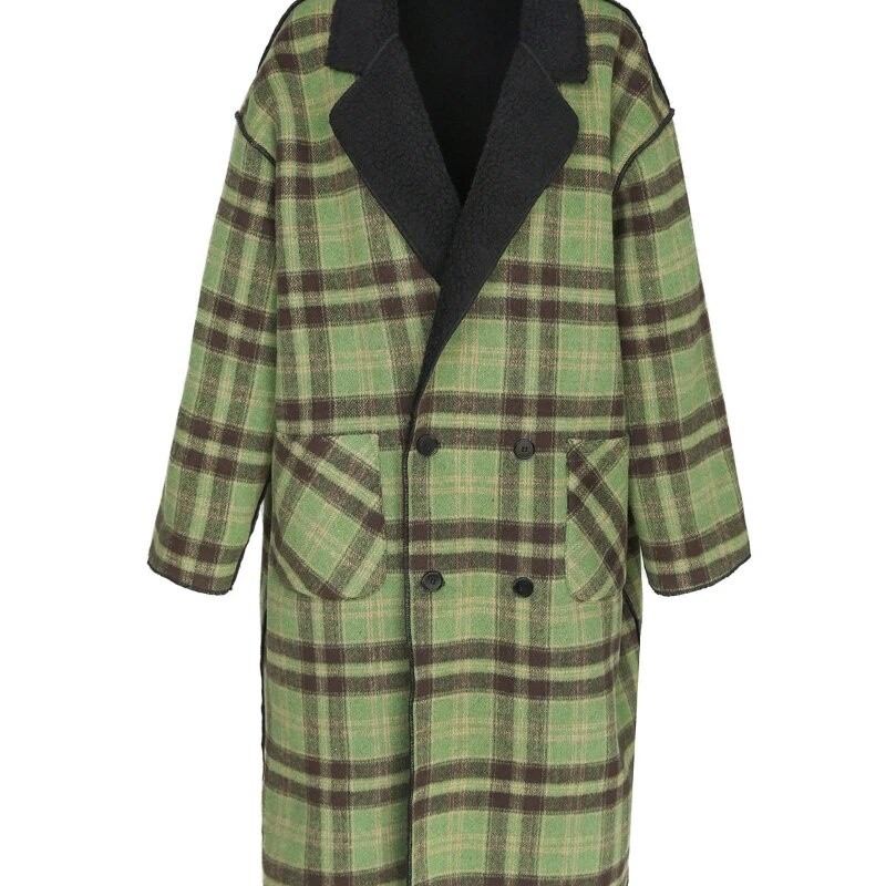 Fashion Tops Winter Trench New Woman Oem Plaid Woolen Tweed Fur Teddy Reversible Blazers Long Jackets Coats Clothes Korean