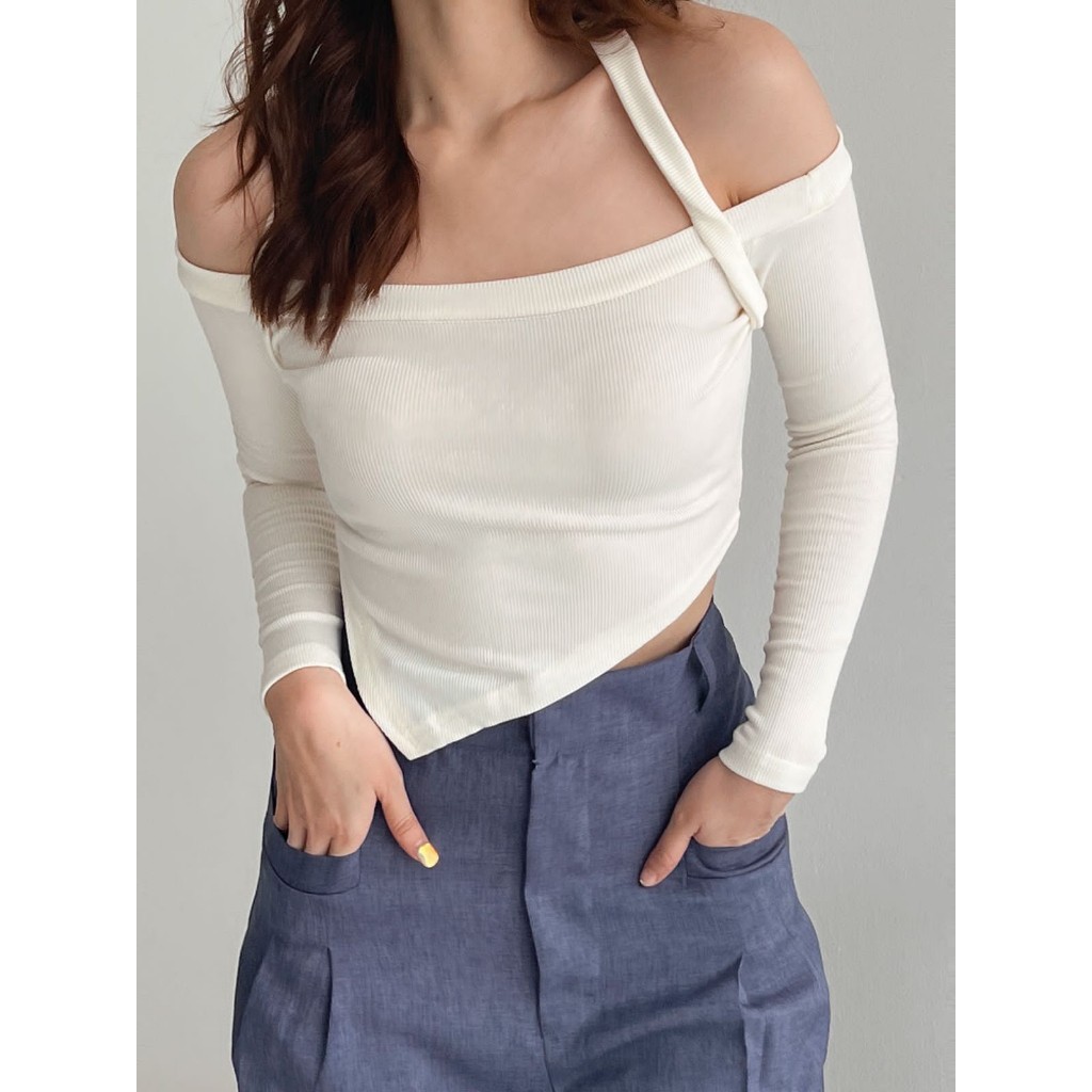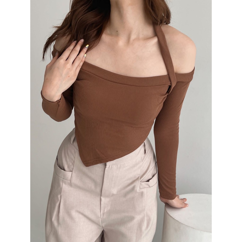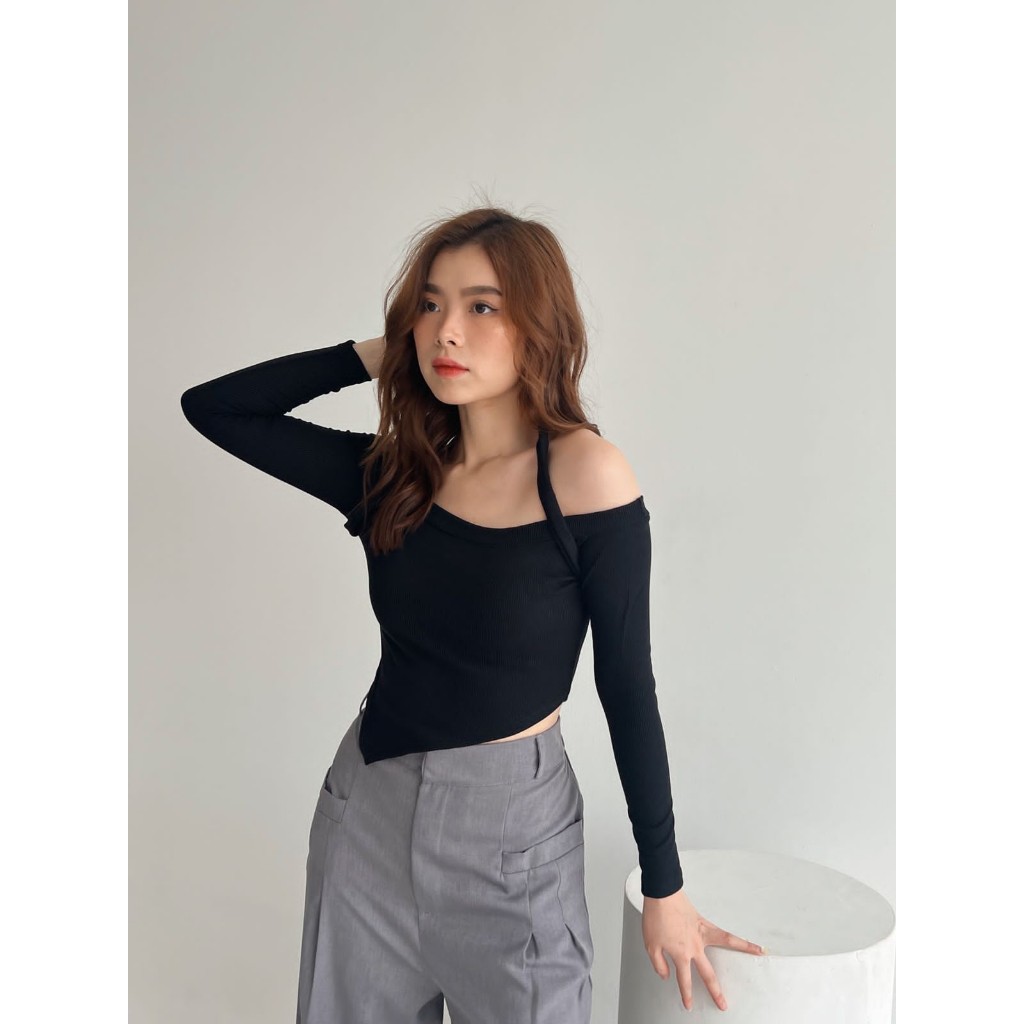 FLORYN HALTER NECK TWO WAYS CROP / Baju Wanita Knit Korean / 002 FLORYN NKD