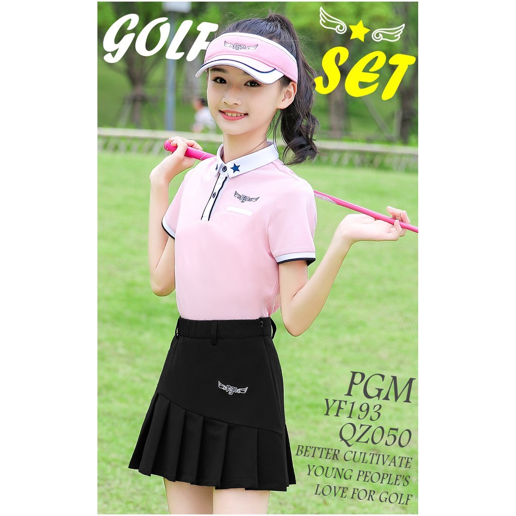 Title : PGM Summer Children's Golf Clothing Girls Short Sleeve T-shirt Golf Clothing Pleated Skirt Suit Varian : Color 1.Qz050 2.Yf193 Size 1.M 2.L 3.XL Gender : Girls Sleeve Length(cm) : Short Collar : Turn-down Collar Material : Microfiber Feature : Breathable Fit : Fits true to size, take your normal size Brand Name : CRESTGOLF pattern : Pure color Fabric name : Cotton Blend Product Category : T - shirt colour : Yf193 Girls Short Sleeves [Pink], Qz050 Girls Pleated Skirt - Black Size : M=130cm,L=140cm,XL=150cm,XXL=160cm Applicability gender : female Applicable age group : children Fabric composition content : 80 Collar type : Lapel Fabric composition : Polyester fibers (polyester) Season fit : Spring, autumn and summer Sleeve length : Short sleeve style : Sports leisure