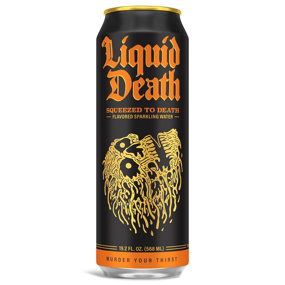 Liquid Death, Squeezed To Death Sparkling Water, Orange Flavored Sparkling Beverage Sweetened With Real Agave, Low Calorie & Low Sugar, 8-Pack (King Size 19.2oz Cans)