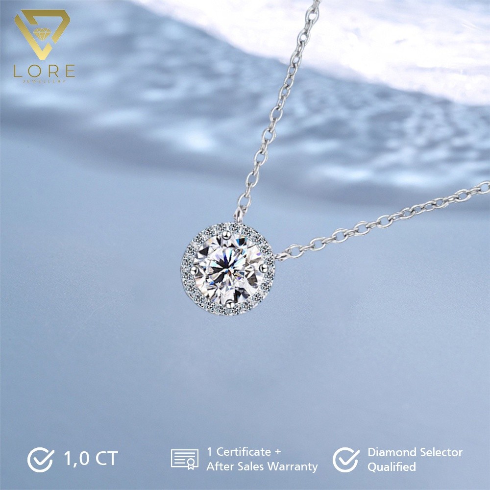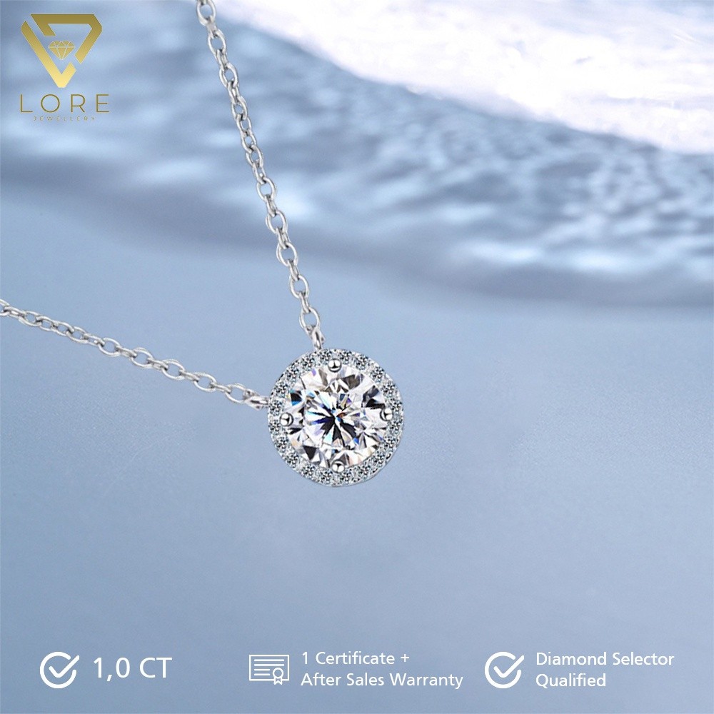 Lore Jewellery - Kalung Moissanite Lapis Emas 18K - Round Moissanite Necklace 1ct [GRA Certificated and After Sales Warranty]