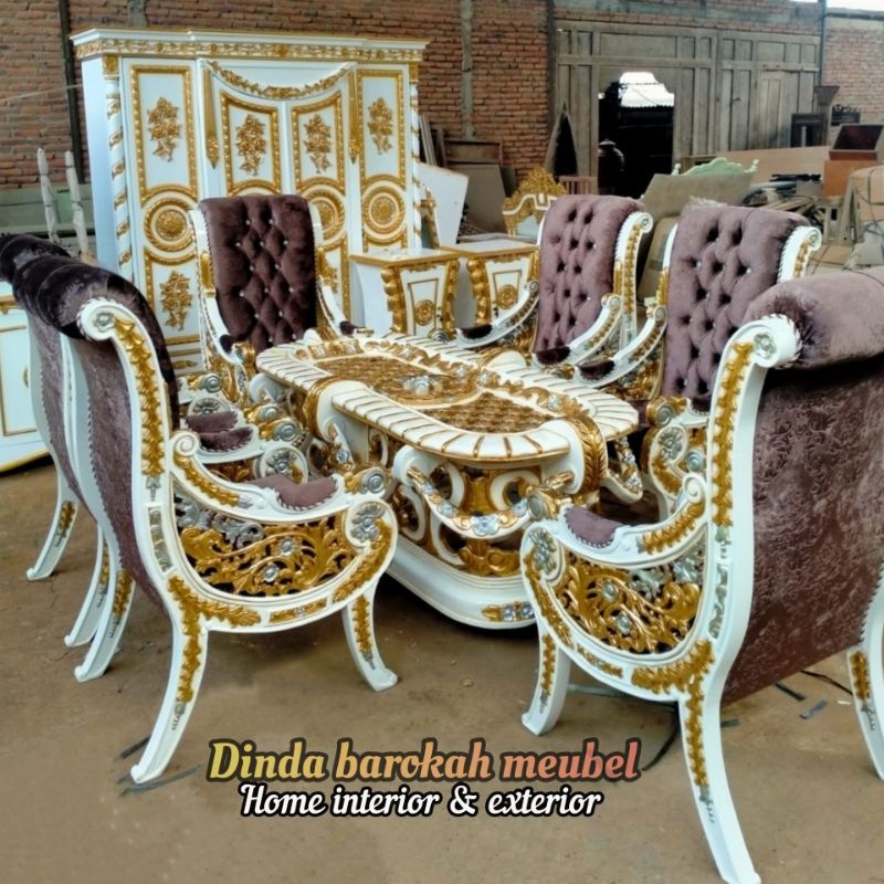 MEJA MAKAN RAFI AHMAD JATI SET 6 KURSI, MEJA MAKAN MEWAH CAT DUCO ELEGAND BERKUALITAS