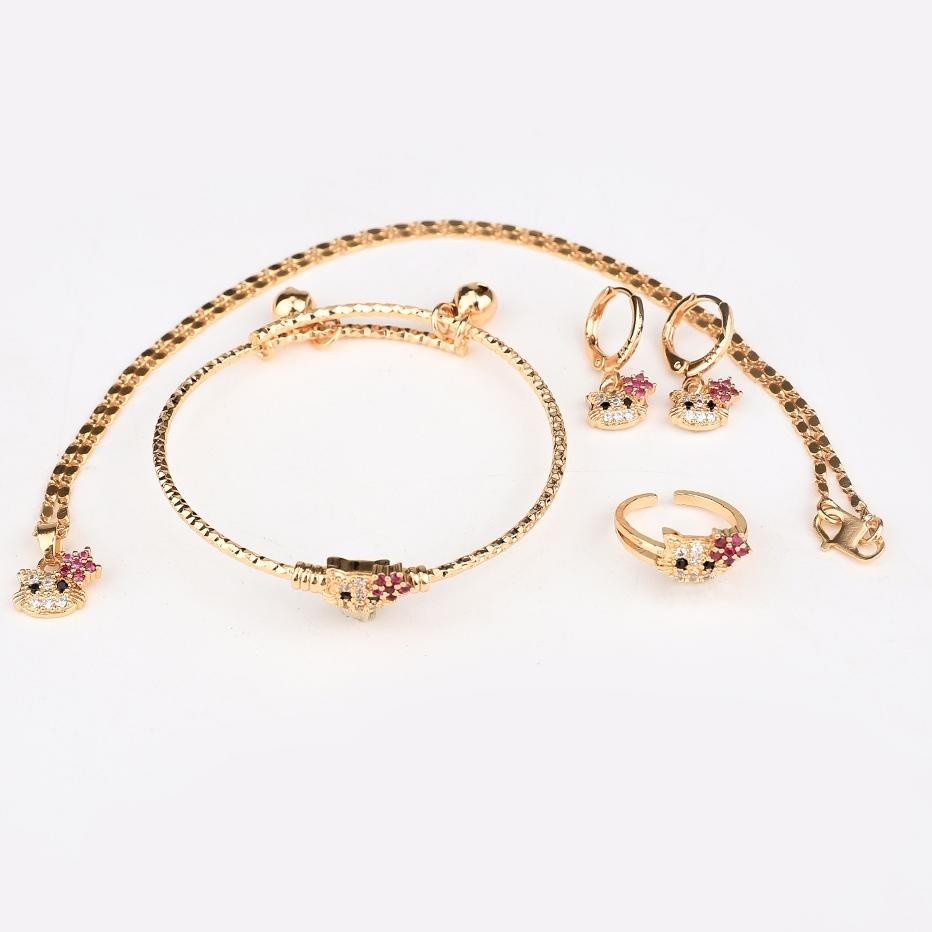 ✨D.G.C✨Set Perhiasan Anak Perempuan Lucu Hellokitty Kalung Gelang Set Anting Titanium Cincin Fashion Aksesoris D454