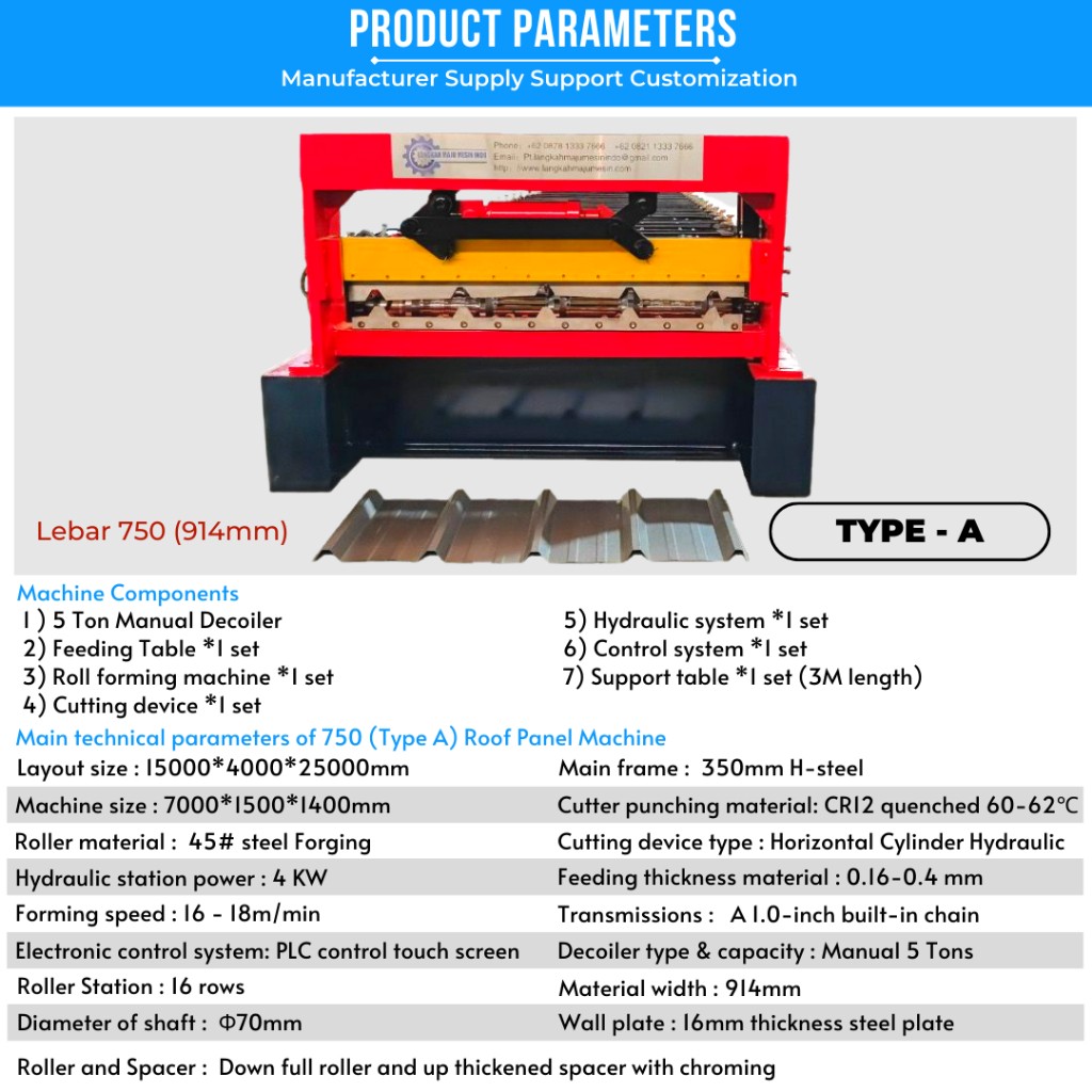 Mesin Spandek 750 Type A / Tile Roll Forming Machine / Roof Panel Machine / Mesin Cetak Spandek Lebar Material 914mm