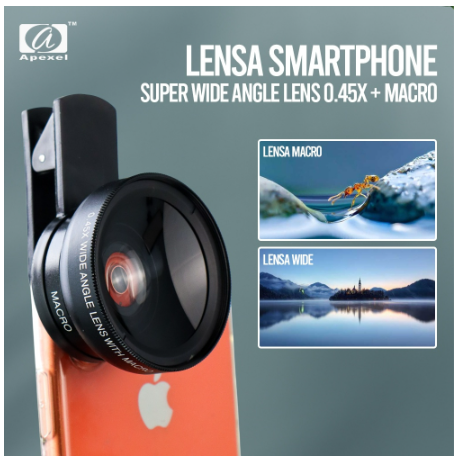 Mipanda 2 In 1 Lensa Super Wide Angle Lens Macro Smartphone Lensa Kamera HP Super Wide Angle Lens 0.45X + Macro Smartphone