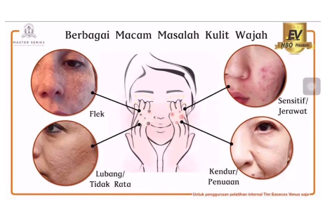 Kulit jadi tampak lebih lembab, cerah, kerutan /Flek, bekas jerawat, noda hitam,urat2 halus cepat memudar