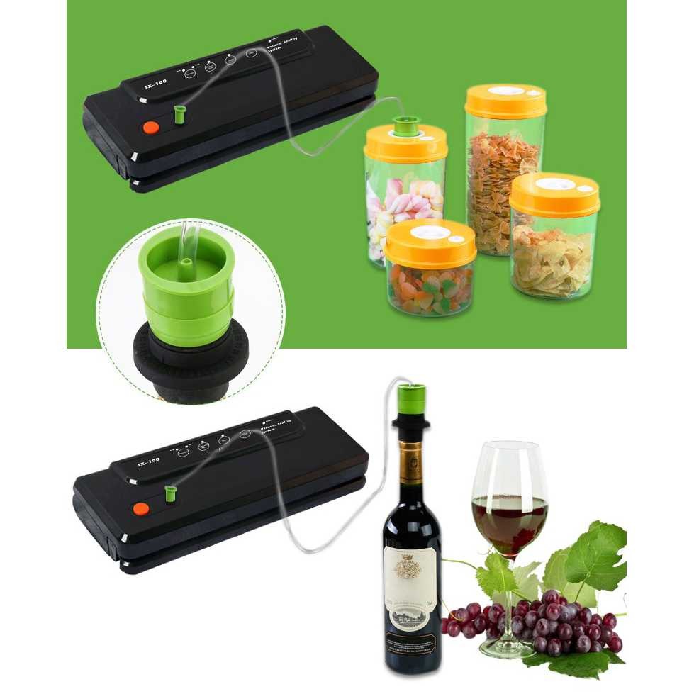 Ingin menyimpan makanan dengan lebih awet di kulkas? Gunakan vacuum sealer ini. Alat ini berfungsi untuk membungkus makanan dengan plastik agar kedap udara sehingga makanan jauh lebih awet. Selain itu, Anda juga dapat menggunakan sealer untuk mengemas produk makanan yang akan Anda jual. ================================================================= ? Produk ORIGINAL dari PRODUSEN LANGSUNG ? Produk di etalase READY STOK ? Pengiriman setiap hari KECUALI hari besar ? BILA ADA KENDALA BISA CHAT LANGSUNG !! FAST RESPONSE ? MOHON UNTUK VIDEOKAN UNBOXING DARI AWAL BUKA PAKET ================================================================= Fitur : Penyimpanan Bahan Makanan Lebih Lama Salah satu alasan mengapa Anda harus memiliki alat ini di rumah adalah, karena dapat menyimpan bahan makanan lebih lama. Bahkan usia bahan makanan yang divacuum bisa tahan 3 sampai 5 kali lebih lama dibanding penyimpanan biasa. Menjaga Kualitas Rasa Vacuum sealer ini menjamin kualitas dan rasa bahan makanan Anda akan sama dan tetap segar meskipun disimpan dalam waktu yang lama. Anda dapat menjaga rasa dan kualitas makanan dengan menggunakan sealer ini. 10 Plastik Gratis Untuk Latihan Anda dapat menggunakan plastik emboss untuk digunakan pada alat ini. Setiap pembelian produk ini mendapatkan 10plastik secara cuma-cuma yang dapat digunakan untuk latihan. Tidak Hanya Plastik Tidak hanya digunakan untuk plastik, alat ini juga berfungsi pada botol dan toples. Tentu saja botol dan toples Anda harus yang mendukung proses vacuum. Kelengkapan Produk : - 1 x Pompa Vacuum Sealer Multifungsi - SX-100 - 1 x Selang Vacuum - 10 x Plastik - 1 x Panduan Penggunaan