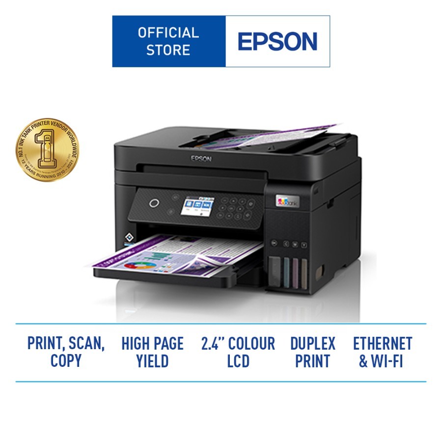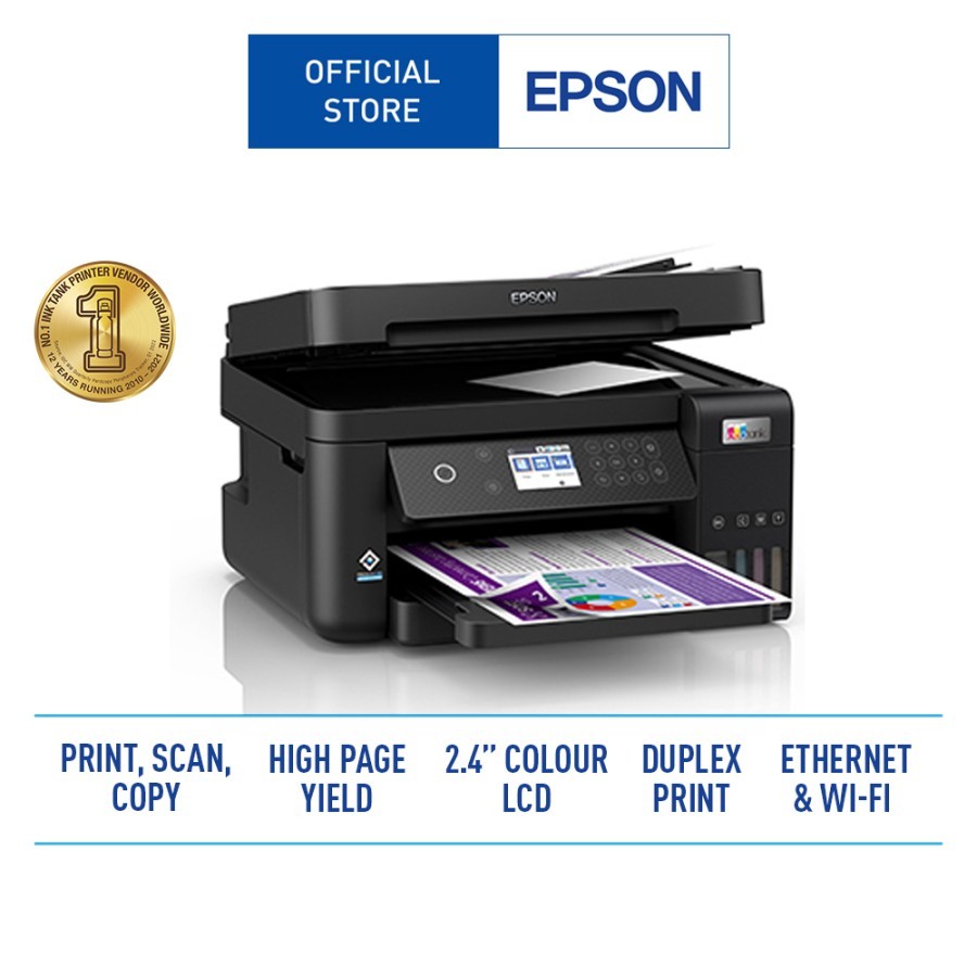 Print, Scan, CopyCompact integrated tank designPrint speeds up to 15.5ipm for black and 8.5ipm for colourAuto-Duplex printingADF capabilityEthernet & Wi-Fi Direct Seamless setup with Epson Smart PanelBorderless Printing up to A4 sizeSpill-free ink refillingWarranty of 2 years of 50,000 pages, whichever comes firstPowered by Epson Heat-Free Technology Mobile and Cloud Solutions:Epson Connect Features:Epson iPrint, Email Print, Remote Print Driver, Scan to CloudOther Mobile Solutions:Apple AirPrint, Mopria Print Service, Epson Smart PaneOS Compatibility:Windows XP SP3 / XP Professional x64 SP2 / Vista / 7 / 8 / 8.1 / 10Windows Server 2003 /2008 / 2012 / 2016 / 2019Only printing and scanning functions are supported for Windows Server OSMac OS X 10.6.8