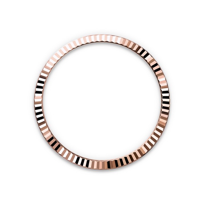 The Rolex fluted bezel is a mark of distinction. Originally, the fluting of the Oyster bezel had a functional purpose: it served to screw the bezel onto the case helping to ensure the waterproofness of the watch. It was therefore identical to the fluting on the case back, which was also screwed onto the case for waterproofness, using specific Rolex tools. Over time, the fluting became an aesthetic element, a genuine Rolex signature feature. Today the fluted bezel is a mark of distinction, in gold on this Datejust 36.