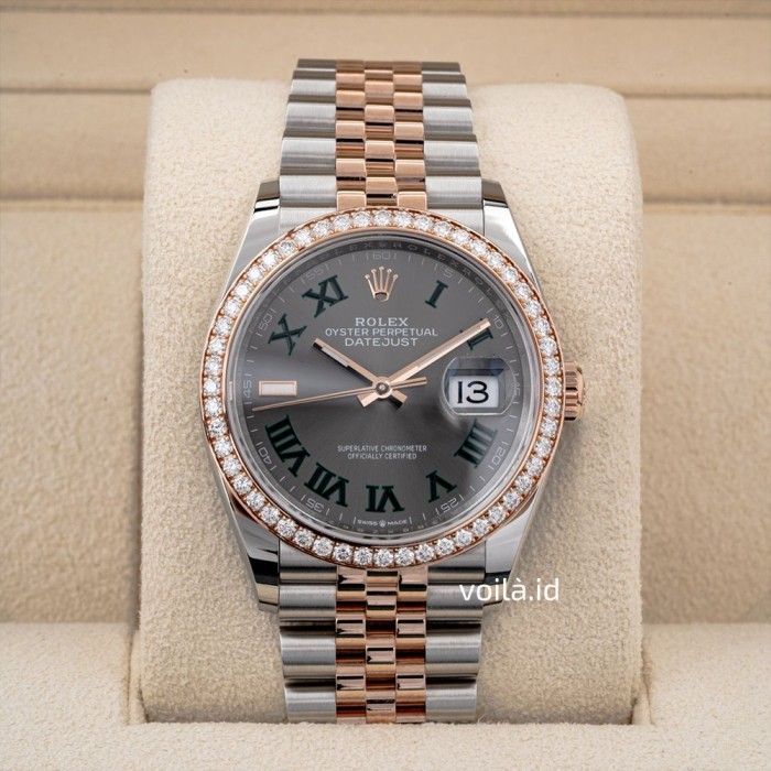 1x Rolex Datejust 36 - 126281 Wimbledon Diamond Bezel Steel-RG Dial Slate Bracelets Jubilee, five-piece links