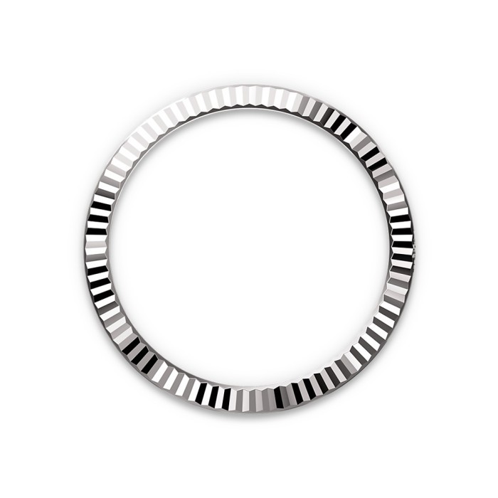 This dial features diamonds in 18 ct gold settings. The sunray finish creates delicate light reflections on many dials in the Oyster Perpetual collection. It is obtained using masterful brushing techniques that create grooves running outwards from the centre of the dial. The Rolex fluted bezel is a mark of distinction. Originally, the fluting of the Oyster bezel had a functional purpose: it served to screw the bezel onto the case helping to ensure the waterproofness of the watch.