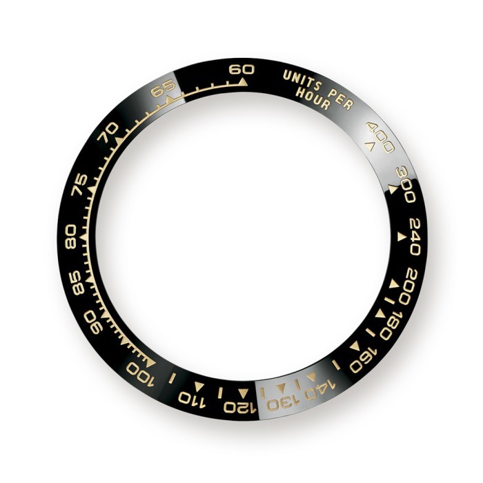 Black monobloc Cerachrom bezel in ceramic with moulded tachymetric scale