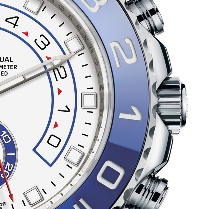 Rolex achieved perfection when it turned its attention to redefining the purpose and functionality of the bezel. Typically, a bezel operates independently from the internal mechanism; however, the Ring Command bezel in the Yacht-Master II regatta chronograph operates in conjunction with it. The Yacht-Master II is equipped with a new dial, and new hands that are characteristic of Rolex Professional models, enhancing legibility and sharpening its aesthetic appeal. The dial now features a triangular hour marker at 12 o’clock and a rectangular hour marker at 6 o’clock for more intuitive reading of the watch.