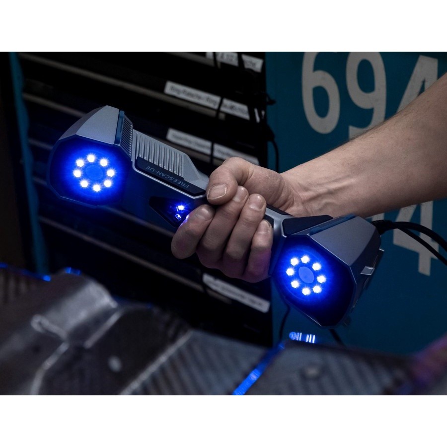 - Detail paling presisi sampai detail 0,02 mm - Menggunakan Light Source: Blue Laser 22+5+1 dengan Photogrammetry - Jarak area scan besar 510 × 520 mm, proses scan lebih cepat - Dilengkapi patented scale bar untuk proses scan photogrammetry - Proses scan sangat cepat dengan scanning speed 1,020,000 points/s - Berat hanya 670 gram, portable Scan Mode : Single/Multiple Lines Scan Scan Accuracy : Up to 0.02mm Volumetric Accuracy : 0.02mm + 0.04mm/m Volumetric Accuracy With DigiMetric : 0,02 mm + 0.025 mm/m Scan Speed UE7 : 650,000 points/s UE11 : 1,200,000points/s Jarak Scan ke Objek : 500 mm Kedalaman Scan : 300mm – 700mm Max. Scan Range : 510mm x 520mm Point Distance : 0.05mm – 3 mm Light Source UE7 : 14 lines + 1 line blue laser UE11 : 22 lines + 1 line blue laser Connection Standard : USB 3.0 Dimensi : 298mm x 90mm x 74.5mm Berat : 670g Powering DC : 12V, 5.0A Inspection Module : EINSENSE Q, Geomagic Control X/Control X Essentials, Polyworks, Catia dan software inspection lainnya Output Formats : OBJ ; STL ; ASC ; PLY ; P3 ; 3MF