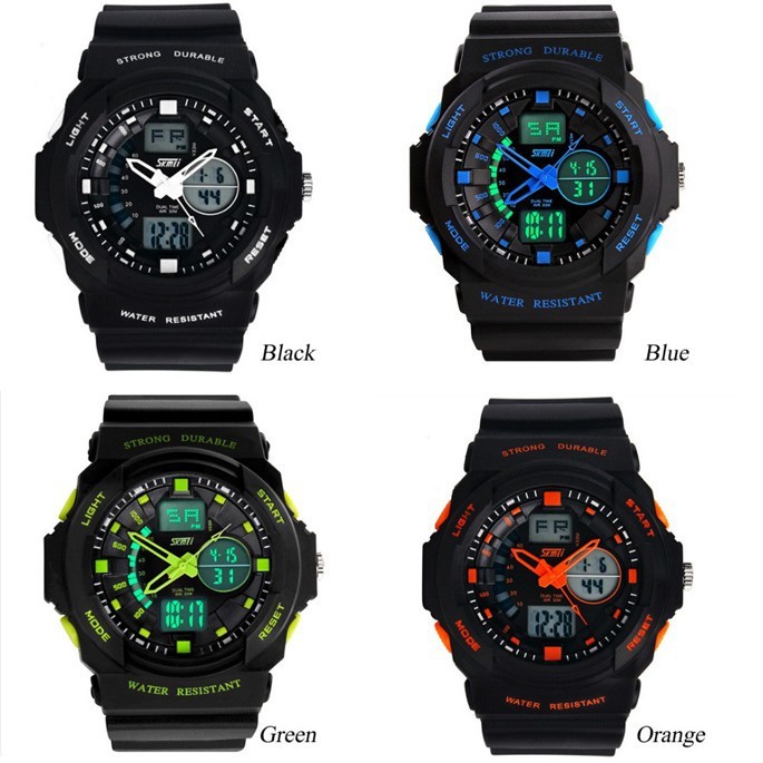 Jam tangan anak SKMEI AD1061 hadir dengan interface penunjuk waktu analog dan digital yang stylish digunakan untuk anak-anak. Dengan design modis, tangguh, dan tahan air hingga kedalaman 30m, jam tangan SKMEI AD1061 sangat cocok untuk Anda kenakan sehari-hari, ataupun saat berolahraga.