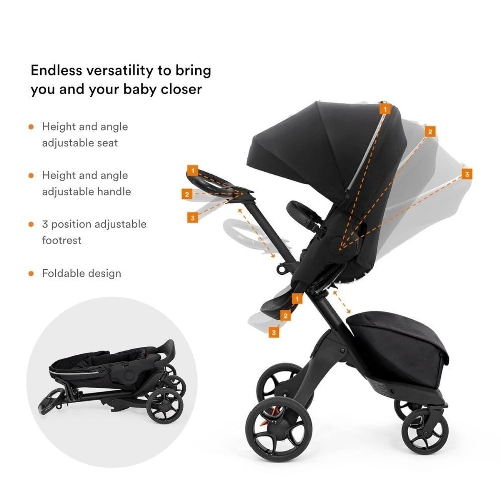- Sasis Hitam Stokke Xplory dengan pegangan kulit imitasi
